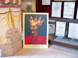 of the monastery, is situated on an island in Snagov Lake. In order to get there, several locals with rowboats ferried us to the island, three or four at a time. The small church, founded in the Fourteenth Century and rebuilt in the Sixteenth, is beautifully decorated with colorful and elaborate frescos that cover every square inch of the interior. Supposedly founded by his grandfather, the monastery served as a retreat and 'safe house' for Prince Vlad and members of his family. It is said that his decapitated body was secretly reburied under a marble slab in the center of the church in front of the screen. In the 1930s archaeologists opened the tomb but found only animal bones. Perhaps he rose from his grave and is still wandering about. His grave is properly decorated with his picture and fresh flowers. Vlad is still revered by Romanians as a unifier of warring Romanian nobles and as the protector of the land from Turkish invaders. The building has been recently restored and is an exquisite example of medieval Orthodox church architecture.